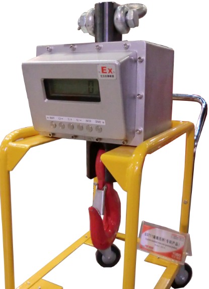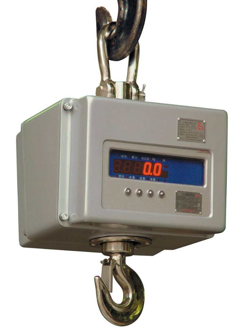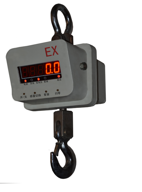【产品概述】:防爆电子吊钩秤,是一种可在有爆炸性气体或爆炸性粉尘场合使用的专用称重计量设备。在通用型电子吊钩秤的基础上通过采用降压,隔离,密封以及光缆通讯等多种措施,阻断或消灭衡器内部电子线路中可能产生的引爆源电气火花,静电火花,高温,从而保证防爆电子吊钩秤能在相应的危险区域中安全可靠地工作。本厂产品的经国家级仪器仪表防爆安全监督检验站检验合格,符合国标GB3836. 1-2000,GB3836.4-2000,适应于我国ibIIT4,ibIIBT4,iaIICT5危险区域。