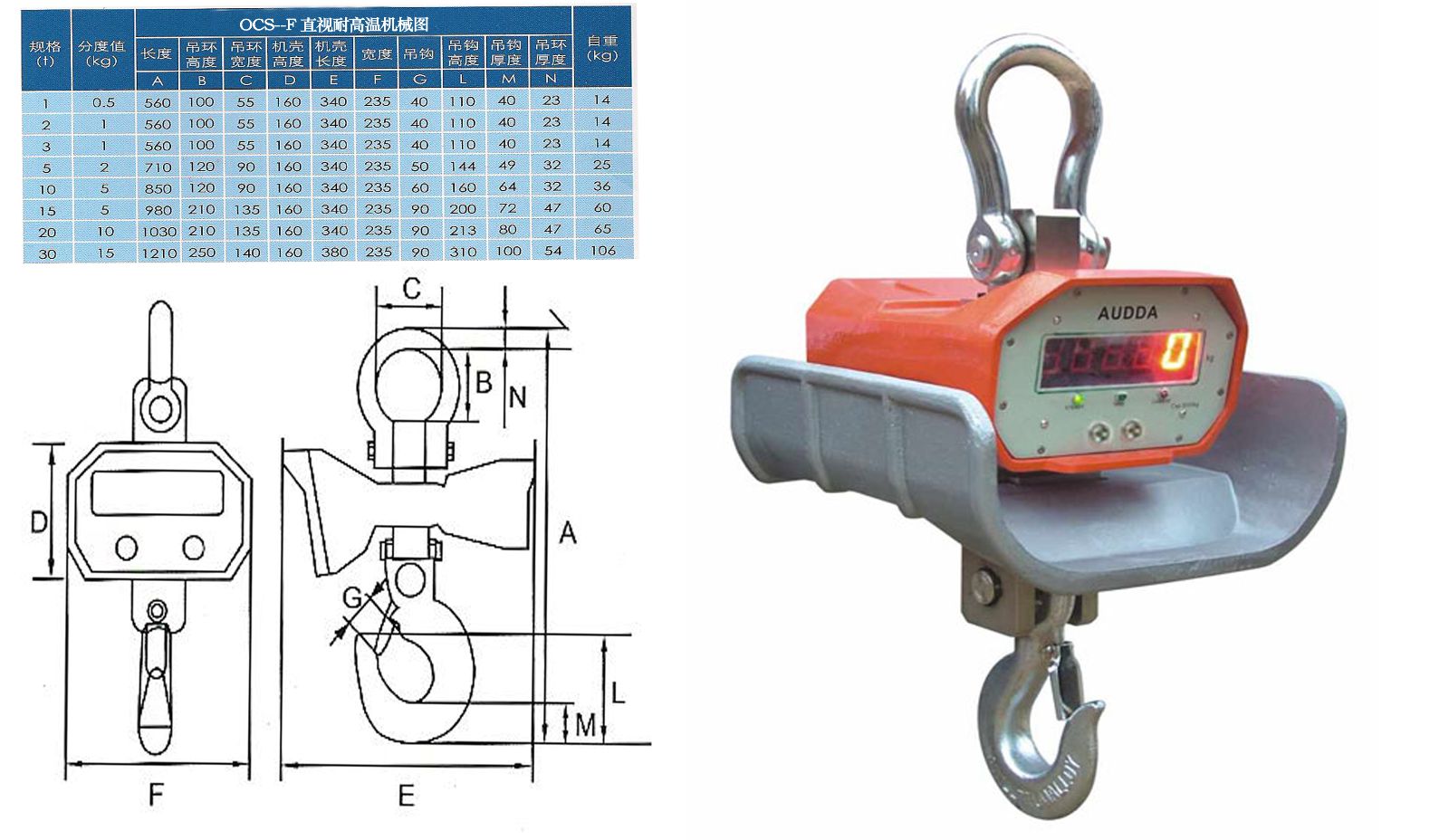 耐高温电子吊秤基本参数: